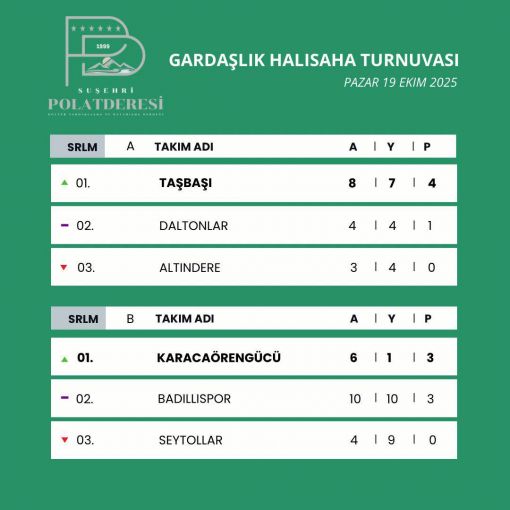 Polat Deresi Derneği olarak düzenlediğimiz Geleneksel Gardaşlık Halı Saha Turnuvamızın ilk günü, nefes kesen maçlar ve büyük bir coşkuyla geride kaldı! Sahada ter döken tüm takımlarımıza centilmence mücadeleleri için teşekkür ederiz.